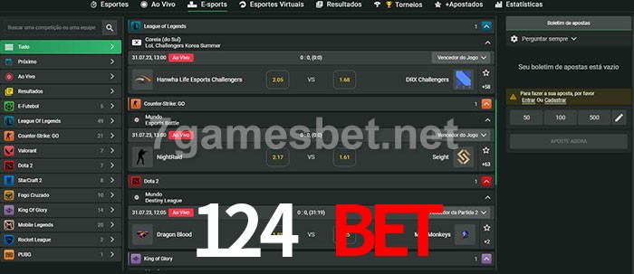 O 124 bet oferece uma grande seleção de opções de apostas em e-sports com probabilidades competitivas